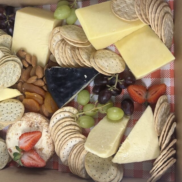 Cheese for every palate. Our cheese entertainer box contains a fine combination of textures and flavours. It includes a selection of cheeses. with dried fruit, nuts and crackers.