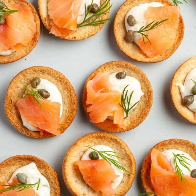 Smoked salmon blinis with cream cheese and dill