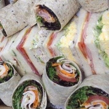 Freshly made sandwiches and wraps, filled with a variety of meats, cheese, egg, salad and condiments.